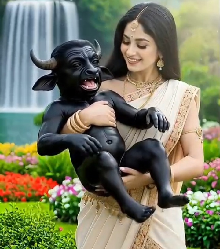 पिता की मृत्यु के बाद, उसकी माता ने तपस्या/आशीर्वाद के माध्यम से एक ऐसे पुत्र को जन्म दिया जो अपनी इच्छा से भैंसा या राक्षस का रूप धारण कर सकता था।