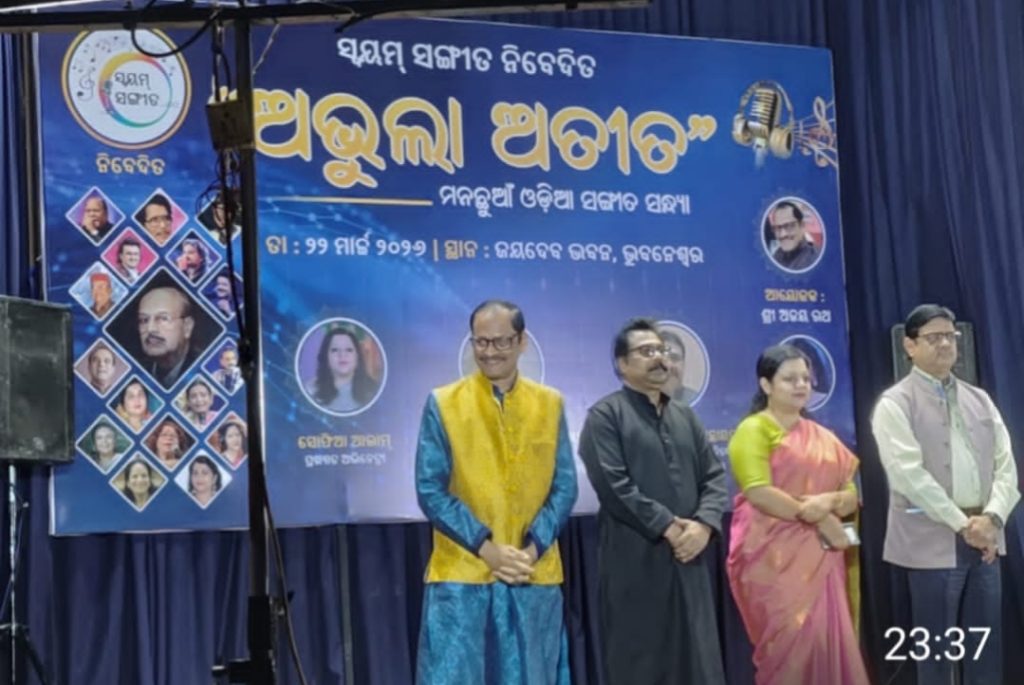 ସ୍ଵୟଂ ସଙ୍ଗୀତ ଗ୍ରୁପ ର ଚତୁର୍ଥ ପଦାର୍ପଣ ଅଭୁଲା ଅତୀତ ମନଛୁଆଁ ଓଡିଆ ସଙ୍ଗୀତ ପରିବେଷଣ ର କାର୍ଯକ୍ରମ ଗତ କାଲି ସନ୍ଧ୍ୟା ରେ ଜୟଦେବ ଭବନ ଠାରେ ଅନୁଷ୍ଠିତ ହୋଇ ଯାଇଛି। ଉକ୍ତ କାର୍ଯକ୍ରମ ରେ ପ୍ରାକ୍ତନ ପ୍ରଧାନ ମୂଖ୍ୟ ଆୟକର କମିଶନର Dr ମନୋରଞ୍ଜନ ପାଣିଗ୍ରାହୀ ମୁଖ୍ୟ ଅତିଥି ଭାବେ ଯୋଗ ଦେଇ ଥିବା ବେଳେ ପ୍ରଖ୍ୟାତ ଅଭିନେତ୍ରି ସୋଫିଆ ଆଲମ୍, ବିଶିଷ୍ଟ ସଙ୍ଗୀତ ନିର୍ଦ୍ଦେଶକ ରାଜକିଶୋର ଗୋଚ୍ଛାୟତ, ପୂର୍ବତନ ସହ ନିର୍ଦ୍ଦେଶିକା ମତ୍ସ୍ୟ ବିଭାଗ, Dr ପ୍ରଭାତ ନଳିନୀ ପଟ୍ଟନାୟକ ପ୍ରମୁଖ ସମ୍ମାନୀତ ଅତିଥି ଭାବେ ଯୋଗଦେଇ ଥିଲେ।