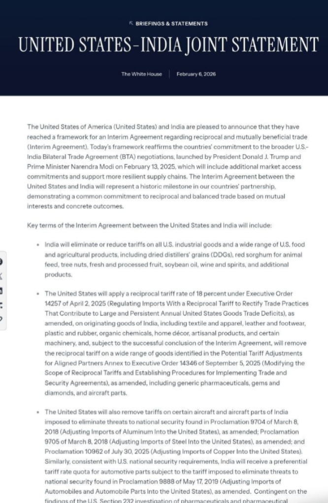ЁЯЗоЁЯЗ│ЁЯЗ║ЁЯЗ╕INDIA US JOINT STATEMENT ON TRADE ARRANGEMENT RELEASED