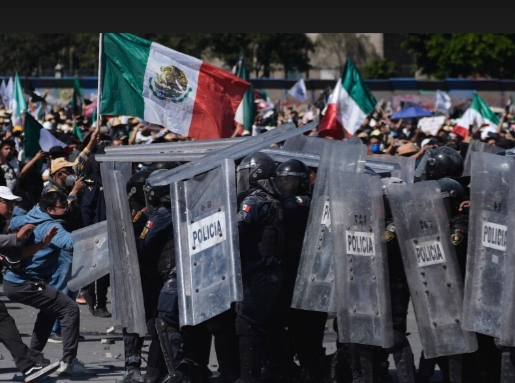 Demonstrators dismantled parts of a barrier protecting the National Palace, where Sheinbaum lives. Police protecting the compound used tear gas on the crowds